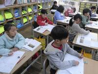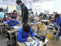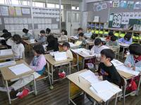 1-1国語「子どもをまもるどうぶつたち」、1-2算数「大きなかず・10のまとまり」、2-1算数「はこの形」、3-2書写「平仮名の丸み・つり」、4-1算数「展開図」、4-2学活「手紙を書こう」の授業の様子です。