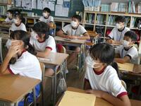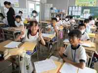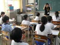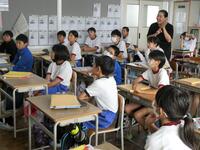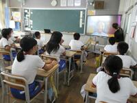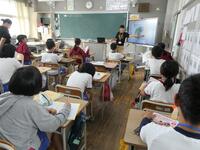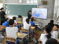 5・6年生の外国語の授業の様子です。5年生の学習内容は「He can ~. She can ~.」身近な人の‘’できること‘’の表現の仕方を練習していました。6年生は「夏休みにしたこと」を英語で紹介するための文法や単語を学習していました。4クラスとも担当の先生たちと和やかに会話をしながら取り組んでいました。