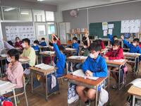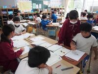 1-1国語「ことばあそび」授業の最後にしりとり言葉遊びをしました。“はも” “ちんあなご”などの言葉も出て楽しそうでしたね。
