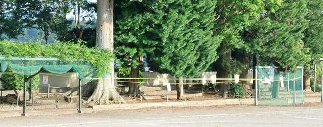 先日8月6日(木)の突風により校庭東の樹木の枝が折れました。折れた枝の大半は下に落ちましたが、まだ折れそうな枝が残っている状態です。当分の間、立入禁止の措置をとりますので、御理解と御協力を御願いします。立入禁止の場所はロープでつないであります。特に、野球部やサッカー部の練習場所の近くですので、部活動関係の方の御協力と御理解もよろしくお願いします。
