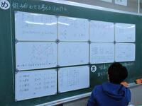 6-1算数「並べ方と組み合わせ」4チームによる総当たり戦の試合の組み合わせについて、図や表に表しながら考え、重なりに気を付ける調べ方(方法)を確認しました。