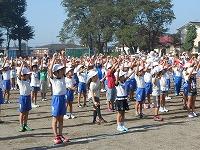 今日の体育集会は、ラジオ体操でした。運動会に向けてどの児童も一生懸命練習していました。