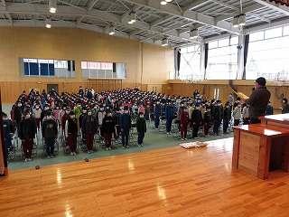 今日の練習は、歌を中心に行いました。卒業式では国歌、校歌、大空がむかえる朝、旅立ちの日に・・・を歌います。今日はインフルエンザ予防のためマスクを着用して行いました。心をこめて歌っていい卒業式をつくっていきたいです。