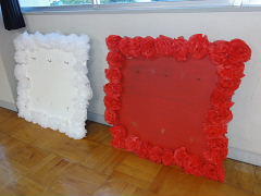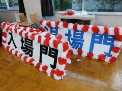入退場門もきれいに飾りを付けました。 明日は紅白の得点板にそれぞれ何点が表示されるのでしょう!