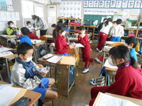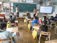 1-1外国語活動「かずをきいたりいったりしよう」漢字の画数を英語で数えたり、今まで習った英語のクイズに答えたり、楽しそうに学習していました。