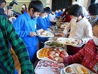 今日は、6年生のバイキング給食でした。好きな給食を自分で選びました。食べた場所も教室ではなく多目的室で、とてもおいしかったです。残さずきれいに食べました。