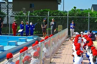 今日、プール開きを行いました。きれいになったプールを囲んで、これから始まる水泳の授業の約束を確認しました。代表の6年生の作文も読みました。自分のめあてをしっかりもって、真剣に練習しようとする内容の作文でした。水泳の授業が始まるのは来週になるかと思います。体調を整えて、しっかり水泳の授業を頑張りましょう。