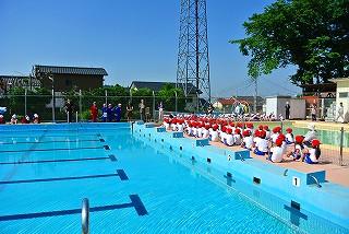 きれいな水です。 低学年プールは1・2・3年生が泳ぎます。