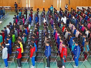 卒業式の全体練習も今日で5日目となり、別れの言葉や歌も上手になりました。今日は入退場、式の流れ、別れの言葉を通して練習しました。主役となる6年生も練習を重ね、態度、歌、よびかけの言葉ともに上手になりました。