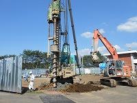 今日暑い中、体育館の工事をやっていました。ボーリングで穴を掘っていました。とても大きな機械でした。