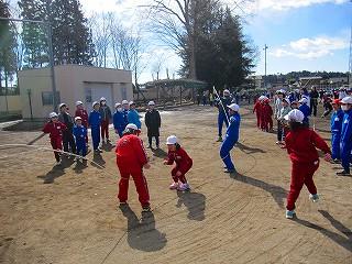 今日の業間の休み時間に、児童集会がありました。掃除の班ごとに大縄で遊びました。1年生から6年生までのみんなで跳んだり、一人ずつ跳んだりして楽しく跳ぶことができました。