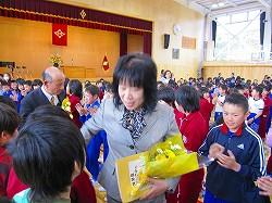 七井小を転出された3名の先生方が来て、離任式を行いました。