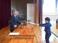 今日は、第3学期の修業式がありました。各学年の代表が校長先生から、修了証書と進級賞を授与されました。またその後、感謝の会がありました。今年度で去る4名の先生方の感謝の会を行いました。最後に、今年度で転校する児童のお別れ会もしました。
