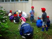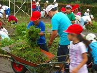 ふれあい除草がありました。今日も、たくさんのおじいちゃん、おばあちゃんが参加してくださり、いっしょに草むしりをしました。土がやわらかくなっていたので、手は真っ黒になってしまいましたが、いつもより草が抜きやすくてよかったです。