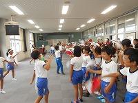 今日の朝の練習は、雨のため、紅白に分かれてそれぞれ練習しました。団長を中心に大きな声で応援しました。また、昼休みには一輪車リレーの練習をしました。