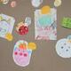 1-2図工「えのぐをつけたかたちから」いろいろな色を考えて表現を工夫する学習です。友達と互いの作品を見合いながら内容や感想を伝え合っていました。