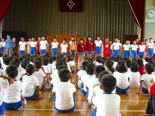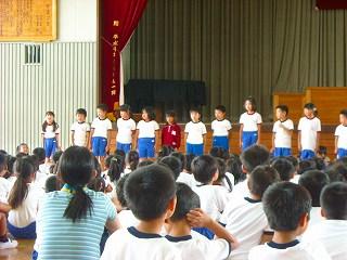 みんなの時間に、2年生と5年生の暗唱発表がありました。