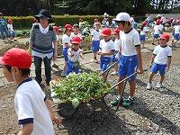 今日は、祖父母の方といっしょに行う「ふれあい除草」がありました。今日は60人以上の祖保母の方に参加していただきました。さすがに祖父母の方の草むしりは上手で、子どもたちも、感心していました。暑い中、大変お疲れ様でした。