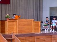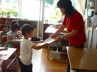 体育館で、終業式がありました。校長先生の話を聞いたあと、代表児童の話がありました。今回は1・3・5年生の代表3名が一学期に頑張ったことや夏休みに楽しみにしていることなどを発表しました。とてもはっきりと聞きやすい発表でした。