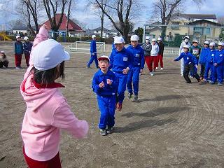 今日の体育集会はクラスごとに大縄を跳びました。担任の先生や友達に縄を回してもらいながら、楽しく跳ぶことができました。
