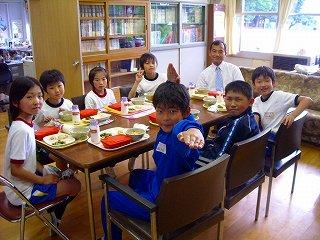あいさつチャンピオンに選ばれるだけあって、元気でユニークなメンバーが集まりました。異学年の友達と一緒に給食を食べるのは、とても嬉しそうでした。