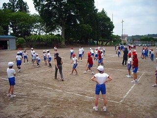 1~3年生はクラスごとにドッジボール、6年生は男女別にキックベースをやりました。