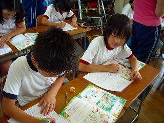 1学期に学習した「わり算」や「たし算、ひき算の筆算」「長さ」の勉強をもとに、図を見て問題を作るという勉強でした。自分で問題を作るというのはとても難しい内容でしたが、どの子もしっかり学習に取り組んでいました。できあがった問題を友達どうしで解き合って、より学習を深めることができました。