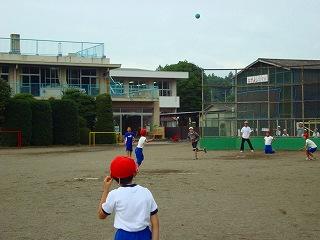 スポーツクラブは、校庭でキックベースをしていました。なかなかボールをけるのが難しくて大変そうでしたが、試合はとても楽しそうでした。