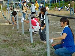 第2回PTA奉仕作業が行われました。早朝よりたくさんの保護者と6年生に集まっていただき、除草・枝葉の剪定・校庭への砂入れ・トイレ掃除・遊具のペンキ塗り・運動会のテントと入退場門設営等、短い時間に様々な作業があっという間に終わりました。2学期はきれいな学校でスタートできます。作業にあたった保護者と6年生のみなさん、準備と運営にあたった厚生部員のみなさん、たいへんお世話になりました。