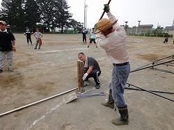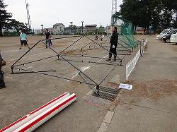 運動会の入退場門を設置しました。 運動会用テントの骨組も設置しました。