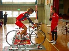 3本ローラー台を使っての実技指導(バランスをとって乗るのは難しいんですよ)