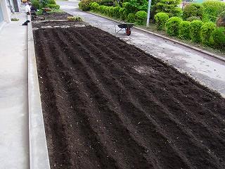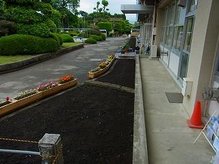 来週の花の苗植えに向けて、先生方が職員室前の花壇の「草取り」と「うね作り」をがんばっています。芸術的な「うね」をご覧下さい。