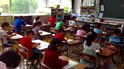 2年生と5年生が知能テストを行いました。難しい問題に真剣に取り組んでいました。