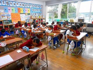 今日は1年生と5年生のクラスの教育実習生の先生が一日、クラス経営を行いました。朝から帰りまで担任の先生が行う授業や校務処理を運営しました。どちらの先生も教材研究をしっかり行い、わかりやすい授業を展開していました。子どもたちも先生の話を一生懸命聞いていました。