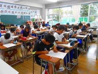 七井小では、月末に計算検定を行っています。今日は第3回計算検定を実施しました。1年生から6年生までの全クラスで計算テストを行いました。1回目で100点の子には満点賞が渡されます。みんな真剣にテストに取り組んでいました。結果が楽しみです。