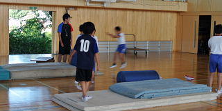 5年1組 体育 マット運動 跳び前転を教えてくれました。