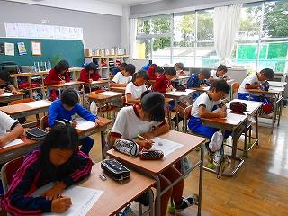 七井小では、月末に計算検定を行っています。今日は第3回計算検定を実施しました。1年生から6年生までの全クラスで計算テストを行いました。1回目で100点の子には満点賞が渡されます。みんな真剣にテストに取り組んでいました。結果が楽しみです。