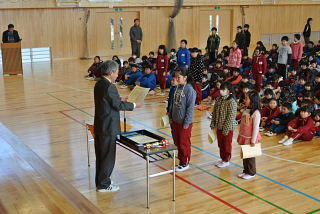 賞状伝達がありました。芳賀地区理科研究展覧会と発表会、栃木県学校教育書写書道作品展、サッカー部芳賀オープン大会の表彰をしました。学習、運動と多くの分野で活躍している七井小の子どもたちです。