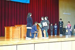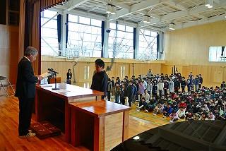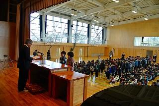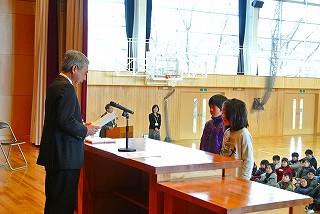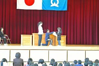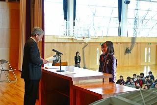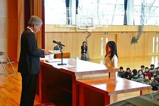 平成25年度が今日で終わりました。校長先生から修了証をいただいた後、3名の児童が3学期の思い出と来年度との抱負の作文発表がありました。
