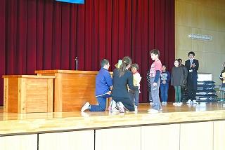 卒業式当日、インフルエンザで欠席した児童の卒業式が行われました。たくさんの同級も自主的に学校に集まり卒業を祝ってくれました。校長先生から卒業証書が渡され、みんなで歌も歌いました。ピアノ伴奏の児童も来てくれて、卒業式と同じように式が行われました。