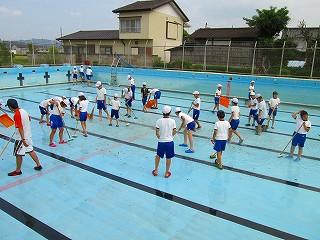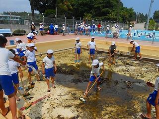 4・5・6年生が昼休みから6校時にかけて、プール掃除を行いました。落ち葉などで汚れたプールを一生懸命掃除して、6校時終了時にはきれいになりました。