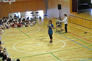 今日、七井小学校創立記念コンサートが行われました。七井小は今年創立140周年を迎えました。140周年を記念して本校の卒業生である藤原稜子さんが記念コンサートを開いてくれました。藤原さんはアメリカでも活躍しているアーティストで昨日ニューヨークから帰ってきたばかりだそうです。今日はオリジナルの曲を中心にたくさんの曲を全校生に聴かせてくれました。特に校歌やパワーフォアーライフで盛り上がり、演奏会場が一体となりました。演奏が終わった後も4校時の授業を参観し給食を一緒に食べるなど、楽しい時間を一緒に過ごすことができました。お忙しい中、お越しいただいた「I-nos」の綾さん、堀田さんにはたいへんお世話になりました。i-nosの活躍を七井小のみんなが楽しみにしています。ありがとうございました。