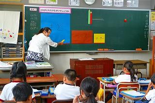 3学年で研究授業を行いました。1年2組の授業を全職員で参観して研修を深めました。