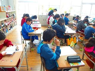 23日(木)外国語活動456年生、全校一斉計算テスト、益子特別支援学校交流学習3年生