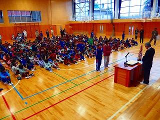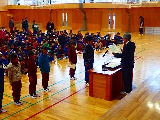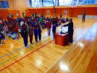 体育集会はマラソン大会に向けて5分間走をやりました。