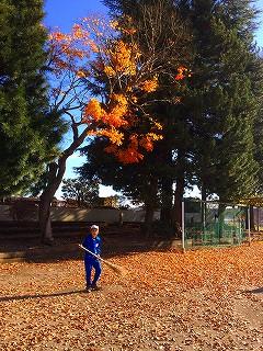 校庭東の「いろはもみじ」が紅葉しています。けやきやサクラの落ち葉も増え始め、外掃除が毎日たいへんです。
