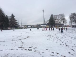 12月16日(火)の朝、雪が降りました。校庭にも雪が積もりました。