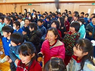 2学年の発表が終わった後、全校生で手話を使って楽しく歌を歌いました。たくさんの保護者の方にも参観していただき、ありがとうございました。