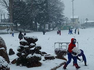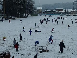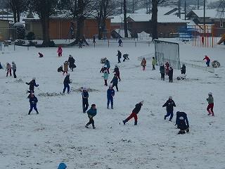 学力テストが終わって、思いっきり校庭で雪遊びをしました。