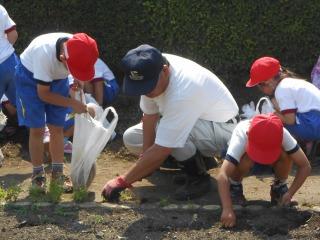 人権擁護委員さんから「人権の花」を代表の6年生が受け取りました。残りの人権の花は、来週約100ほど届きます。花の苗植え活動の際に、全校児童で植える予定です。